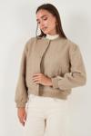 Lela Loose Fit Sıfır Yaka Çıtçıtlı Kaşe Kısa Bayan Mont 6810178 BEJ