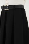 Modest Kemerli Comfort Fit Yüksek Bel Pileli Kloş Uzun Tesettür Bayan Etek 6833360 SİYAH