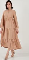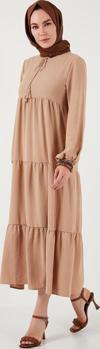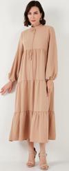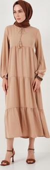 Lela Modest Regular Fit Dik Yaka Uzun Bayan Elbise 611EL545 CAMEL