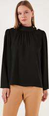 Lela Omuz Düğmeli Regular Fit Dik Yakalı Bayan Bluz 611BZ0235 SİYAH