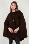 Oversize Fit Bisiklet Yaka Pelerin Kol Düğmeli Bayan Panço 4617015 KAHVE