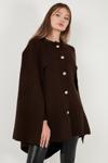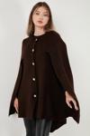 Lela Oversize Fit Bisiklet Yaka Pelerin Kol Düğmeli Bayan Panço 4617015 KAHVE