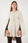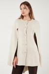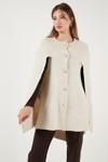 Lela Oversize Fit Bisiklet Yaka Pelerin Kol Düğmeli Bayan Panço 4617015 TAŞ