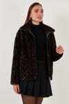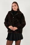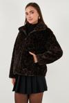 Lela Oversize Fit Dik Yaka Fermuarlı Bayan Kürk 497ZETA LEOPAR