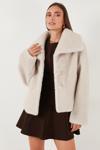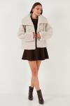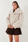 Lela Oversize Fit Yuvarlak Yaka Astarlı Kısa Bayan Kürk 6810266 EKRU - Image 1