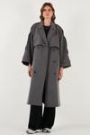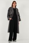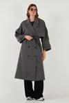 Oversize Fit Kruvaze Yaka Düğmeli Kemerli Uzun Bayan Trençkot 6839476 ANTRASİT