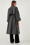Lela Oversize Fit Kruvaze Yaka Düğmeli Kemerli Uzun Bayan Trençkot 6839476 ANTRASİT