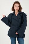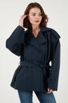 Lela Oversize Fit Kruvaze Yaka Kuşaklı Düğmeli Bayan Trençkot 6839609 LACİVERT