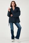Oversize Fit Kruvaze Yaka Kuşaklı Düğmeli Bayan Trençkot 6839609 LACİVERT