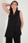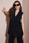 Oversize Fit Mono Yaka Kolsuz Düğmeli Ceket Bayan Yelek 6521177 SİYAH