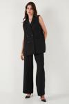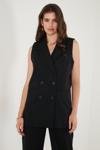 Lela Oversize Fit Mono Yaka Kolsuz Düğmeli Ceket Bayan Yelek 6521177 SİYAH