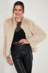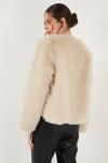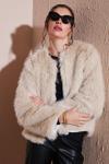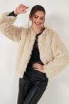 Oversize Fit Yuvarlak Yaka Astarlı Kısa Bayan Kürk 6810266 EKRU