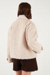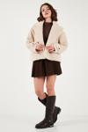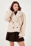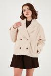 Lela Oversize Kruvaze Yaka Yumuşak Tüylü Düğmeli Astarlı Bayan Mont 6839659 BEJ