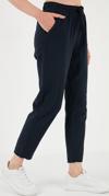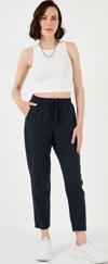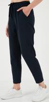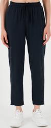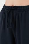 Lela Pamuklu Belden Bağlamalı Yüksek Bel Keten Görünümlü Kısa Paça Bayan Pantolon 668YP5134 LACİVERT