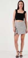 Pamuklu Fermuarlı Asimetrik Mini Bayan Şort Etek 668YP4411 GRİ