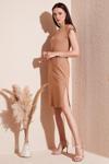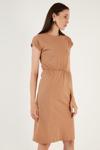 Pamuklu Kısa Kollu Çift Yırtmaçlı Midi Bayan Elbise 5864205 BİSKÜVİ