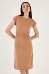 Lela Pamuklu Kısa Kollu Çift Yırtmaçlı Midi Bayan Elbise 5864205 BİSKÜVİ