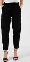 Lela Belden Bağlamalı Rahat Kesim Krinkıl Kuımaş Bayan Pantolon 5862061 SİYAH - Image 1