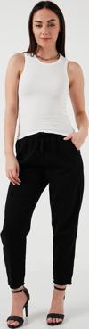 Lela Belden Bağlamalı Rahat Kesim Krinkıl Kuımaş Bayan Pantolon 5862061 SİYAH