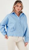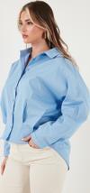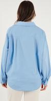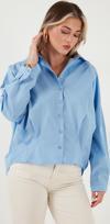 Lela Pamuklu Oversize Önü Kısa Arkası Uzun Klasik Yaka Bayan Gömlek 6834985 MAVİ