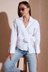Pamuklu Regular Fit Uzun Kollu Bağlama Detaylı Bayan Gömlek 65200538 BEYAZ