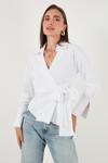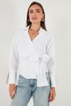 Lela Pamuklu Regular Fit Uzun Kollu Bağlama Detaylı Bayan Gömlek 65200538 BEYAZ