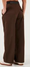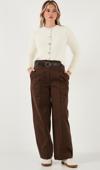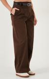 Lela Pamuklu Relaxed Fit Geniş Paça Dikiş Detaylı Kemerli Bayan Pantolon 68351208 KAHVE