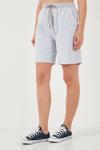 Pamuklu Relaxed Fit Yüksek Bel Cepli Mini Bayan Şort 668YP5384 BEBE MAVİ