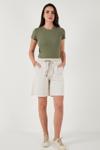 Only Onlcallie Keten Karışımlı Regular Fit Bayan Short 15318789 YEŞİL-BEJ