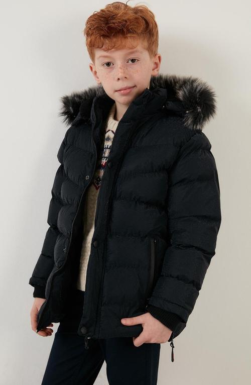 Lela Peluş Astarlı Yakası Suni Kürklü Çıkarılabilir Kapüşonlu Kışlık Erkek Çocuk Mont 5761906 LACİVERT