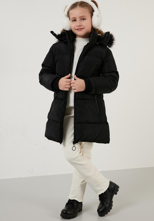 -Yakası suni kürklü çıkarılabilir kapüşon