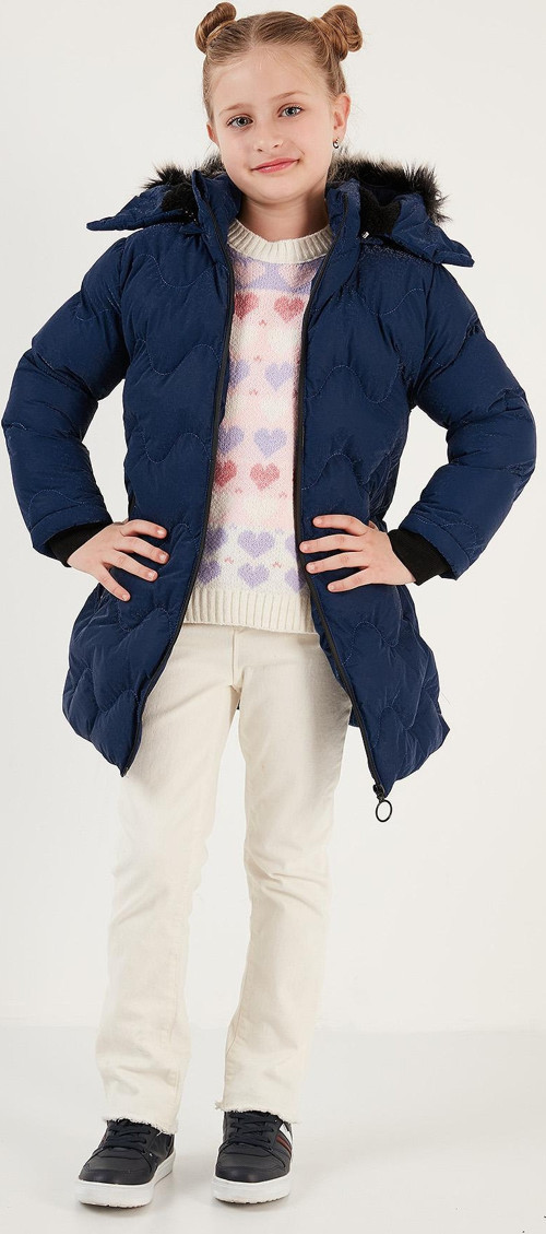 Lela Peluş Astarlı Yakası Suni Kürklü Çıkarılabilir Kapüşonlu Kışlık Kız Çocuk Mont 5761905 SAKS