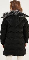 -Yakası suni kürklü çıkarılabilir kapüşon