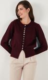 Lela Premium Comfort Fit Yuvarlak Yaka Crop Triko Bayan Hırka 680HI00164 BORDO