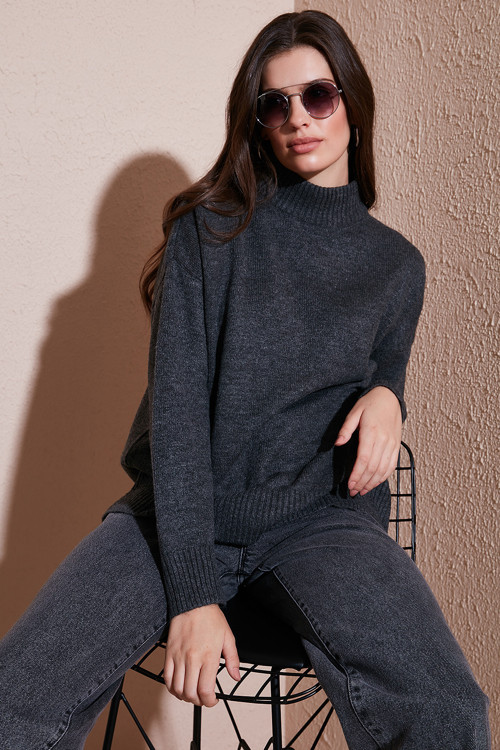 Premium Oversize Fit Balıkçı Yaka Yumuşak Dokulu Triko Bayan Kazak 680KZ00469 ANTRASİT