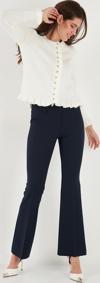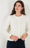Lela Premium Pile Detaylı Regular Fit Yuvarlak Yaka Triko Bayan Hırka 680HI00038 EKRU