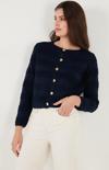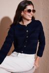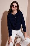 Premium Regular Fit Bisiklet Yaka Düğmeli Dokulu Triko Bayan Hırka 680HI00337 LACİVERT