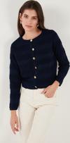 Lela Premium Regular Fit Bisiklet Yaka Düğmeli Dokulu Triko Bayan Hırka 680HI00337 LACİVERT