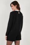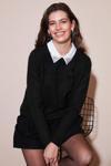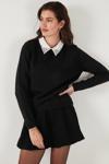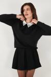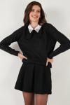 Lela Premium Regular Fit Gömlek Yaka Yumuşak Dokulu Fiyonk Detaylı Taşlı Bayan Kazak 680KZ00035 SİYAH