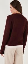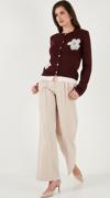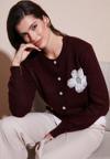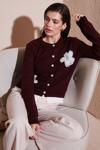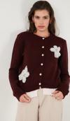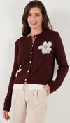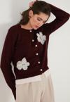 Lela Premium Tül Çiçek Detaylı Regular Fit Bisiklet Yaka Düğmeli Triko Bayan Hırka 680HI002421 BORDO