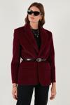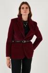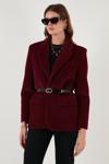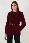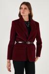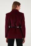Lela Regular Fit Astarlı Kemer Detaylı Peluş Dokulu Bayan Ceket 6839490 BORDO