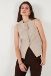 Lela Regular Fit Bisiklet Yaka Kolsuz Düğmeli Basic Bluz Bayan Yelek 65200004 TAŞ