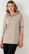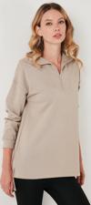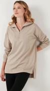 Lela Regular Fit Fermuarlı Yaka Önü Kısa Arkası Uzun Bayan Sweat 5865876 TAŞ