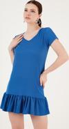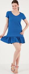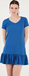 Lela Regular Fit Fırfırlı V Yaka Bürümcük Mini Bayan Elbise 5865071 SAKS
