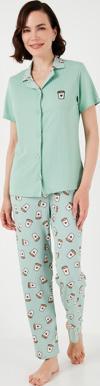 Regular Fit Gömlek Yaka Kısa Kollu Bayan Pijama Takımı 65740102 Mint-Bej