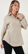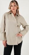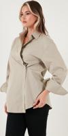 Detaylar :-Düğmesiz, büyük kol manşetli detaylı