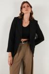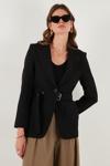 Hazel Kadın Siyah Bel Bağlamalı Blazer Ceket