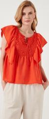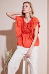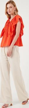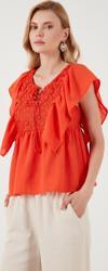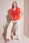 Lela Regular Fit Önden Bağlamalı Volanlı Bayan Bluz 611FB20064 ORANJ