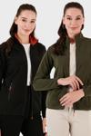 Lela Slim Fit Anti-Pilling Tüylenme Yapmayan Fermuarlı Cepli Hırka 2' li Paket Bayan Polar 5907002S2 HAKİ-SİYAH