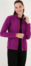 Lela Slim Fit Anti-Pilling Tüylenme Yapmayan Fermuarlı Cepli Hırka 2' li Paket Bayan Polar 5907002S2 Mor-Oranj